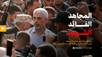 ينشر موقع KHAMENEI.IR الإعلامي مقطعًا مصوّرًا يتضمّن قراءة بيان الإمام الخامنئي بتاريخ 19/10/2024 باللغة العربيّة والذي أصدره سماحته بمناسبة استشهاد رئيس المكتب السياسي لحركة «حماس» في فلسطين القائد البطل يحيى السنوار.