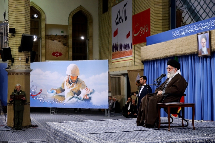 عيدكم مبارك، ومبروك عليكم يوم الجيش، ومبروك عليكم العام الجديد، وكذلك مبروك عليكم عيد المبعث في السابع والعشرين من رجب، وعيد ولادة مولانا الإمام علي بن أبي طالب في الثالث عشر من رجب، وكذلك على عوائلكم المحترمة وأبنائكم وزوجاتكم. والواقع أن عوائلكم وزوجاتكم هم رفاق قتالكم وجهادكم. في ساحات الحياة الصعبة، حيث تكون حياة الجندي طافحة بالصعوبات والضغوط والمجاهدات وما شاكل بالمعنى الحقيقي للكلمة، فإن زوجاتكم وأبنائكم الذين يرافقونكم ويتعاطفون معكم بقلوبهم هم حقاً رفاق خنادقكم وقتالكم.