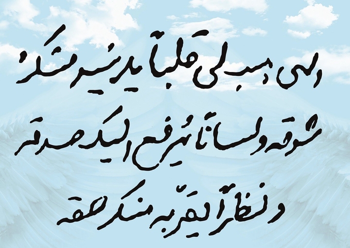 *بوستر يتضمّن مقطعاً من المناجاة الشعبانية بخط يد الإمام السيد علي الخامنئي