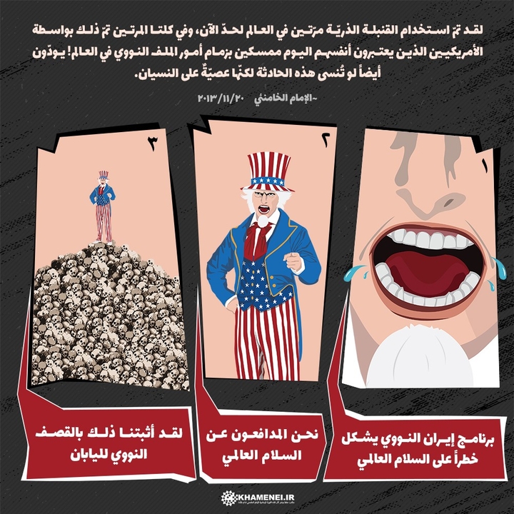 امريكا التي تعتبر نفسها وصية على القضية النووية في العالم هي الحكومة الوحيدة التي استخدمت القنبلة النووية