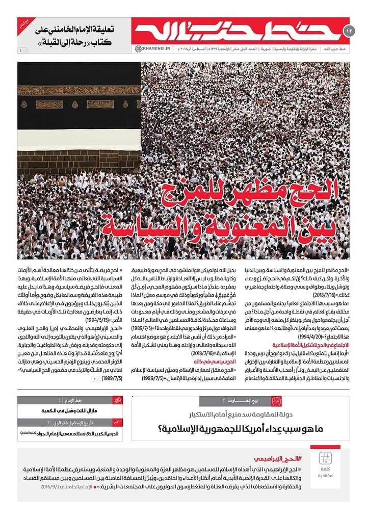 وأُرفق في هذا العدد من نشرة خط حزب الله أيضاً تعليق الإمام الخامنئي على كتاب السفر نحو القبلة إضافة إلى نشر صورة لسماحته في موسم الحج، كما ورد شرح لإحدى الأحاديث، وتمّ الحديث حول العائلة المسلمة وأحكام الحج.