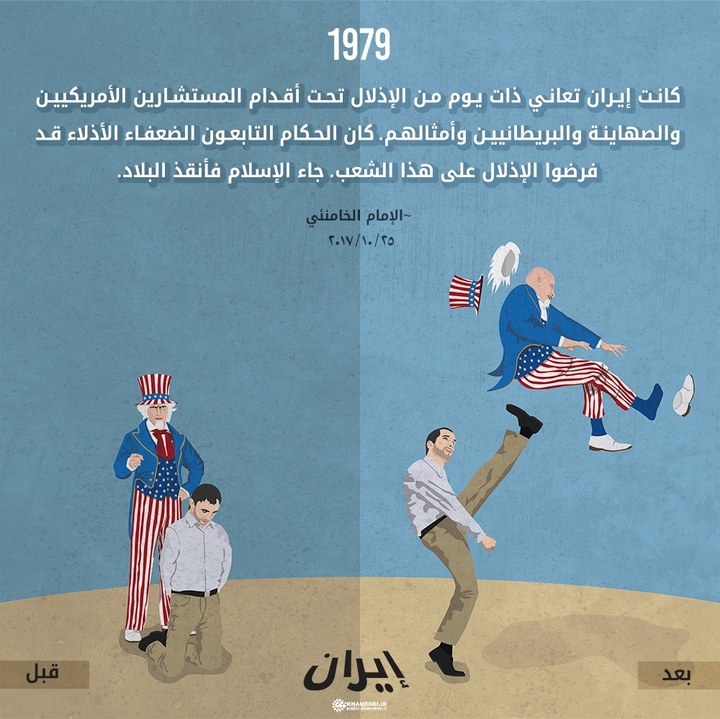 كانت إيران تعاني ذات يوم من الإذلال تحت أقدام المستشارين الأمريكيين والصهاينة والبريطانيين وأمثالهم. كان الحكام التابعون الضعفاء الأذلاء قد فرضوا الإذلال على هذا الشعب. جاء الإسلام فأنقذ البلد.