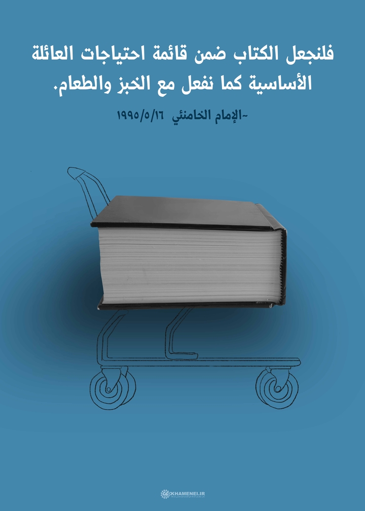ينبغي أن يكون شراء الكتب من ضمن المصاريف الأساسيّة للعائلة. على النّاس أن يولوا أهميّة أكبر لشراء الكتب من شراء بعض وسائل الزينة والتجمّل مثل الثريّا، وأنواع الطاولات، ومختلف أنواع الأثاث والستائر و... فليشتروا الكتاب أوّلاً مثل الخبز والطعام ووسائل العيش الضروريّة؛ ثمّ بعد أن فليهتمّوا بالأمور الإضافيّة بعد أن يتمّ تأمين هذا الجانب. خلاصة الأمر، ينبغي أن يأنسوا بالكتاب. وفي غير هذه الحالة، فإنّ المجتمع الإيراني لن يبلغ الهدف والآمال التي ينشدها والتي هي من حقّه.