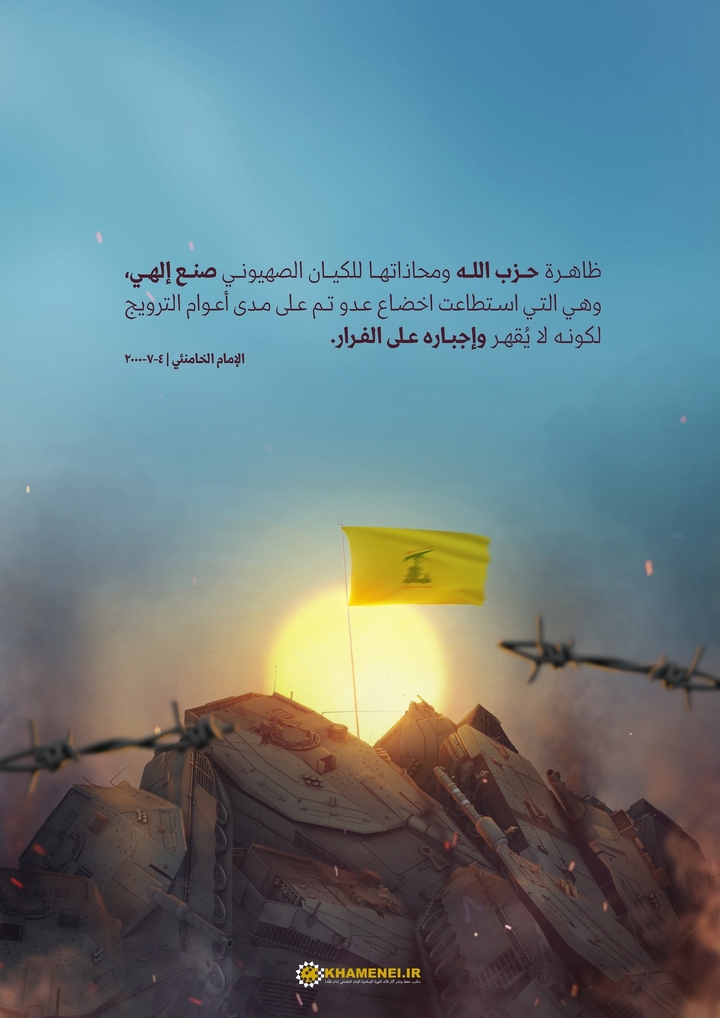 ظاهرة حزب الله في لبنان الموجودة في المنطقة ومحاذاتها للكيان الصهيوني الغاصب صنعٌ إلهي، وهي قد استطاعت إخضاع عدوّ تمّ على مدى أعوام الترويج لكونه لا يُقهر وإجباره على الفرار، كما أنّ الانتصارات الأخيرة في جنوب لبنان قد مهّدت الأرضية لالتحاق الجيل الفلسطيني الجديد أكثر فأكثر بحركة النضال والجهاد ضدّ الكيان الغاصب للقدس.