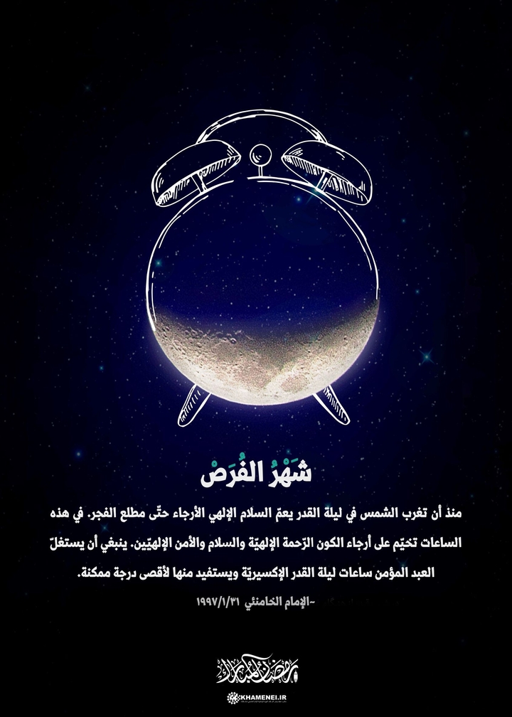 شهر رمضان هو شهر الاستغفار والإنابة والدعاء. منذ أن تغرب الشمس في ليلة القدر يعمّ السلام الإلهي الأرجاء حتّى مطلع الفجر. في هذه الساعات تخيّم على أرجاء الكون الرّحمة الإلهيّة والسلام والأمن الإلهيّين. ينبغي أن يستغلّ العبد المؤمن ساعات ليلة القدر الإكسيريّة ويستفيد منها لأقصى درجة ممكنة. تلك الليلة، ليلة عجيبة؛ أفضل من ألف شهر، ليست تساوي ألف شهر؛ “خيرٌ من ألف شهر”. كم يمكن أن يحتوي ألف شهرٍ من عمر الإنسان من بركات وخير ورحمة! هذه الليلة الواحدة أفضل من ألف شهر. لهذا الأمر أهميّة بالغة. إعرفوا قدر هذه الليلة واقضوها بالدّعاء والتوجّه والتفكّر والتأمّل في آيات الخلق والتأمّل في مصير الإنسان وما طلبه الله عزّوجل من الإنسان وفي دناوة هذه الحياة الماديّة وأنّ كلّ ما ترونه هو مقدّمة لعالم آخر حيث أنّ لحظة تسليم الرّوح هي لحظة العبور إلى ذلك العالم.