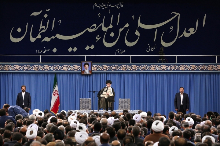 حول الشؤون السياسية الجارية في الوقت الحاضر أيضاً أبدى الشعب الإيراني عن نفسه عزة وعظمة واقتداراً بالمعنى الواقعي للكلمة والحمد لله. لا في خصوص القضايا الأخيرة ـ وهذه بحد ذاتها نموذج ـ بل على مدى هذه الأعوام الأربعين، لقد أبدوا ذلك حقاً. حين ترون في وكالات الأنباء الخارجية عن ألسنة الساسة والدبلوماسيين وما شاكل أنهم كثيراً ما يكررون هذه الأيام بأن إيران لا يمكن تركيعها بالضغوط والحظر والتهديد وما إلى ذلك، فهذا ليس ناتجاً عن الأوضاع في الشهر الأخير أو الشهرين الأخيرين أو الأشهر الستة الأخيرة بل هو ناجم عن أربعين عاماً من مسيرة الشعب الإيراني. لقد حرر الشعب الإيراني نفسه بالثورة من قوقعة الذلة والخضوع التي فُرضت عليه. لقد حطم هذه القوقعة وخرج منها. وبرزت فيه الهوية الإيرانية بخصوصيات إسلامية، وصار ينشد العزة والاستقلال والتقدم، لذلك كلما زاد الأعداء الظّلمة من ضغوطهم لم تؤثر فيه هذه الضغوط. لقد مارسوا كل هذه العراقيل ضد الانتخابات في البلاد، لكن الناس يشاركون بعزم وإرادة مثيرة للإعجاب حقاً في ساحات الانتخابات. وفي آخر هذا العام توجد انتخابات، وهناك أيضاً على الرغم من وجود بعض حالات بث الترديد والشكوك من قبل بعض الأفراد، لكنني أعلم أن الشعب سوف يشارك في هذه الانتخابات بشوق وحماس، وهذا ما يثبت ويدل على عظمة الشعب الإيراني. وإذا بهم يوجهون التهم لهذا الشعب الكبير هذا الشعب الشجاع هذا الشعب حسن السمعة، من الذي يوجه الاتهامات؟ أكثر حكومات العالم شراً أي الحكومة الأمريكية (13). أكثر دول العالم وحكومات العالم شروراً ومسببو الحروب وسفك الدماء والتفرقة ونهب وسلب الشعوب على مدى تاريخ طويل، وليس على مدى عشرة أعوام أو عشرين عاماً، الوجوه الأكثر كراهية في مثل هذه الدولة يتهمون شعب إيران، ويوجهون الشتائم والإهانات لشعب إيران في كل يوم. الشعب الإيراني لا يتوقف بسبب هذه الإهانات ولا يتراجع بسبب هذه الإهانات والشتائم. لقد تعرض الشعب الإيراني للظلم ـ هذا الحظر الظالم نفسه ظلم بارز ضد شعب إيران ـ لقد تعرض الشعب الإيراني للظلم لكنه ليس ضعيفاً، الشعب الإيراني مقتدر. وبفضل من الله وبحول الله وقوته سوف يصل الشعب الإيراني بقوة واقتدار إلى كل أهدافه التي رسمها لنفسه.