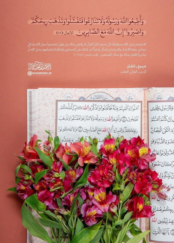 ينشر موقع KHAMENEI.IR الإعلامي خلال أيّام شهر رمضان المبارك بشكل يومي مجموعة من الدروس القرآنية للإمام الخامنئي التي فسّرها سماحته وشرحها ضمن خطاباته. وقد تمّ إعداد هذه الدّروس تحت عنوان "ربيع القرآن" بشكل تراتبيّ من الجزء الأوّل حتّى الجزء الثلاثين من القرآن الكريم حيث سوف يُنشر في كلّ يومٍ من أيّام الشهر الفضيل درسٌ من هذه الدروس على الموقع الرّسمي وحسابات شبكات التواصل الاجتماعي.
