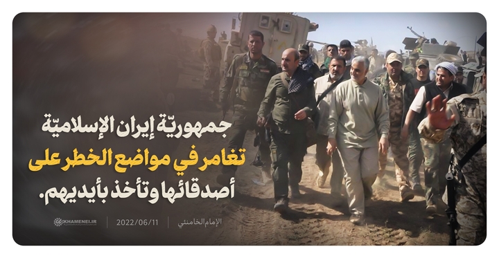 جمهوريّة إيران الإسلاميّة تغامر في مواضعِ الخطر على أصدقائها وتأخذ بأيديهم. ~ الإمام الخامنئي 11/6/2022