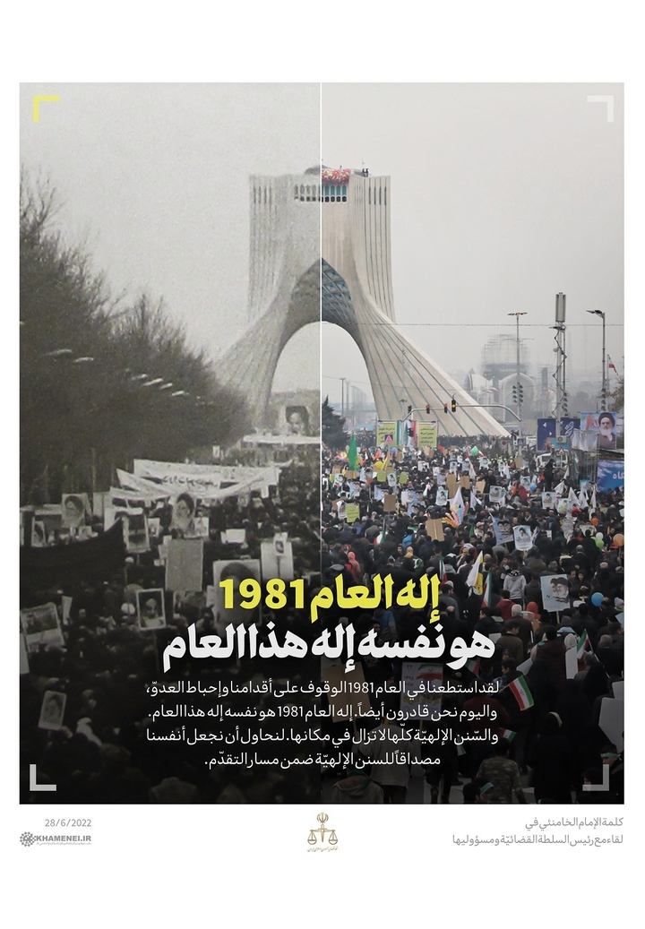 لقد استطعنا في العام 1981 الوقوف على أقدامنا وإحباط العدوّ، واليوم نحن قادرون أيضاً. إله العام 1981 هو نفسه إله هذا العام. والسّنن الإلهيّة كلّها لا تزال في مكانها. لنحاول أن نجعل أنفسنا مصداقاً للسنن الإلهيّة ضمن مسار التقدّم.