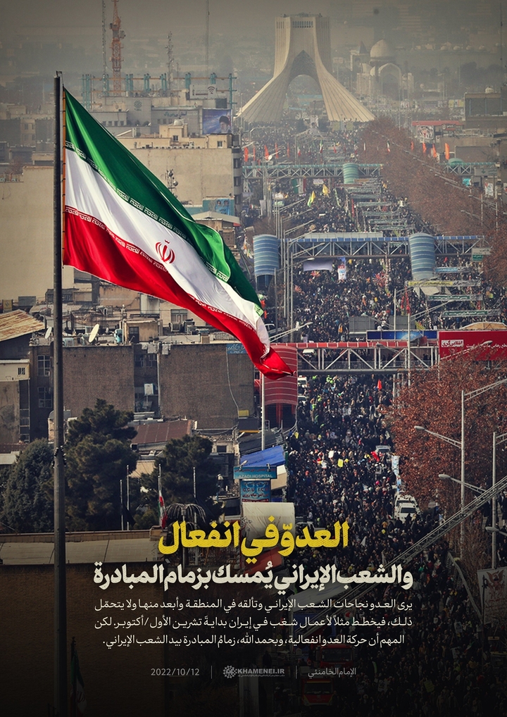 يرى العدو نجاحات الشعب الإيراني وتألقه في المنطقة وأبعد منها ولا يتحمّل ذلك، فيخطط مثلاً لأعمال شغب في إيران بدايةَ تشرين الأول/أكتوبر. لكن المهم أن حركة العدو انفعالية، وبحمد الله، زمامُ المبادرة بيد الشعب الإيراني.