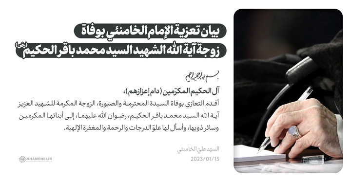 بيان تعزية الإمام الخامنئي بوفاة زوجة آية الله السيد محمد باقر الحكيم (رض)