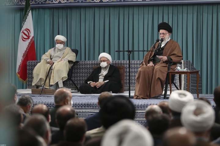 في بداية هذا اللقاء، ألقى رئيس الجمهوريّة، حجّة الإسلام والمسلمين إبراهيم رئيسي، كلمة أشار فيها إلى خطبتي الإمام الخامنئي في صلاة عيد الفطر، وتحديداً تعاون السلطات الثلاث في خدمة الناس من أجل حلّ المشكلات.