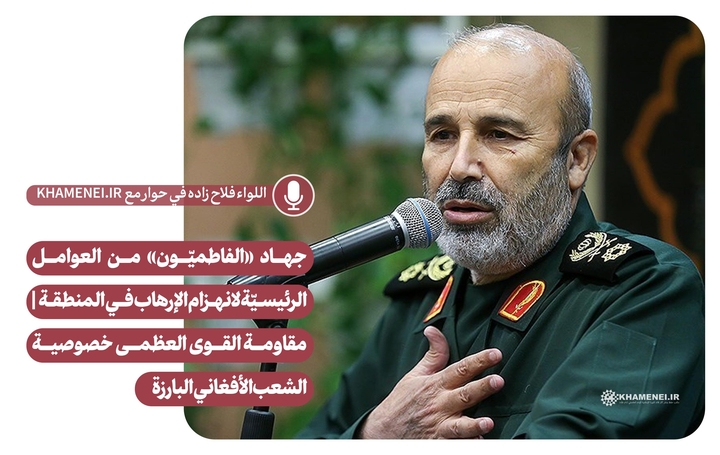 وإنّنا بفضل توجيهات قائد الثورة الإسلاميّة وإرشاداته الحكيمة، شهدنا استعداد رجال أحرار من أرجاء البلدان الإسلاميّة خوض الميدان من أجل الدفاع عن الإسلام المحمّدي الأصيل وحقوق الناس والدفاع أيضاً عن المقامات المقدّسة الشريفة لآل الله. ثمّ تطوّع رويداً رويداً الأفغان الأعزّاء المقيمون في إيران وبعض الأفغان من داخل أفغانستان أيضاً ومع إحاطتهم بالظروف الدوليّة المستجدّة في سوريا، خاضوا الميدان وشكّلوا الحلقة الأولى لتأسيس «الفاطميّون».