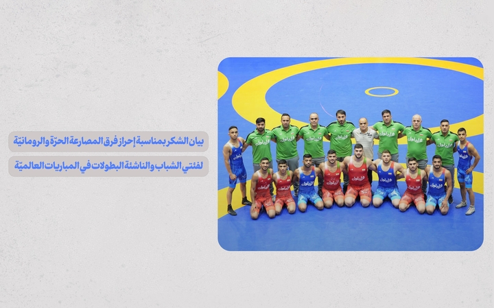 أتوجّه بالشّكر إليكم وإلى فرق المصارعة الحرّة والرومانيّة لفئتي الشباب والناشئة التي حققت الفوز خلال الأسبوعين الأخيرين.