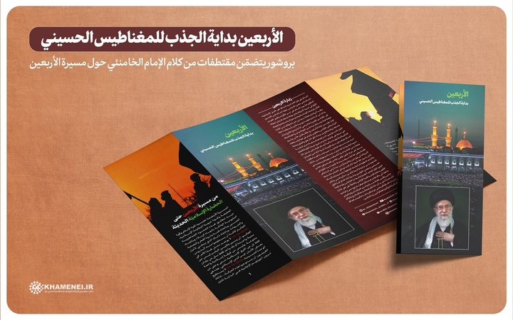 ينشر موقع KHAMENEI.IR الإعلامي بروشوراٌ یحمل عنوان «الأربعين بداية الجذب للمغناطيس الحسيني» ويتضمّن مقتطفات من كلام الإمام الخامنئي حول مسيرة الأربعين وفي ختامه يأتي نص زيارة الإمام الحسين في يوم الأربعين.