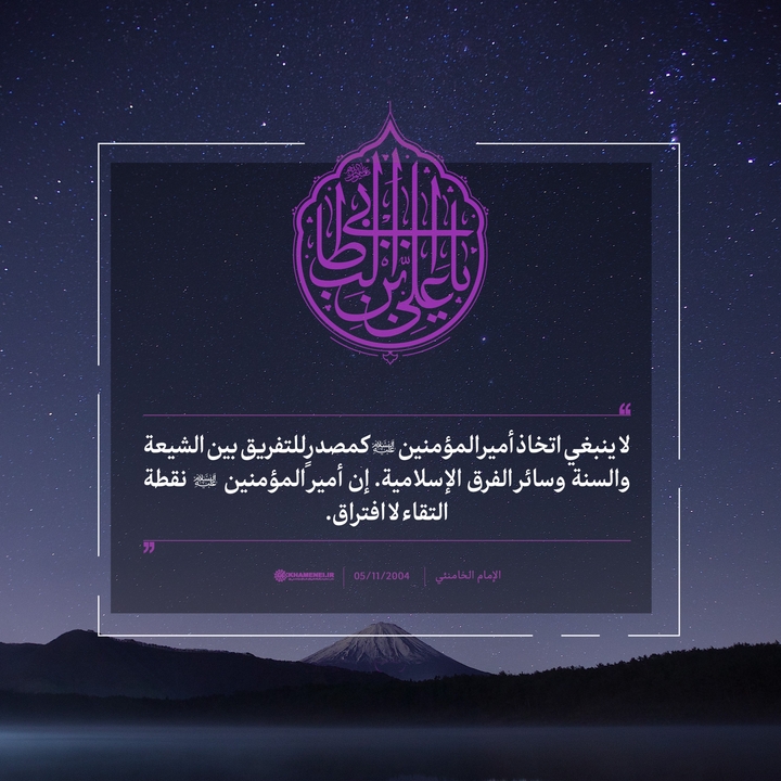 لا ينبغي اتخاذ أمير المؤمنين (ع) كمصدرٍ للتفريق بين الشيعة والسنة وسائر الفرق الإسلامية. إن أمير المؤمنين (ع) نقطة التقاء لا افتراق.