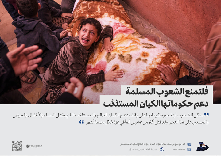 يمكن للشعوب أن تجبر حكوماتها على وقف دعم الكيان الظالم والمستذئب الذي يقتل النساء والأطفال والمرضى والمسنين على هذا النحو، وقد قتل أكثر من عشرين ألفاً في غزة خلال بضعة أشهر.