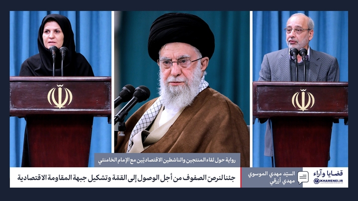 وكما جرت العادة في معظم خطابات القائد، أشار هذه المرة أيضاً إلى أهمية الصادرات والتعاون الاقتصادي الإقليمي، وبالطبع أكد دور الحكومة في فتح مسارات العلاقات الاقتصادية الخارجية. واختتم حديثه بفكرة أن صمود الشعب الإيراني أمام التهديدات والحظر جعلهم يصلون إلى قمم لم يكن من الممكن الوصول إليها في الظروف العادية.