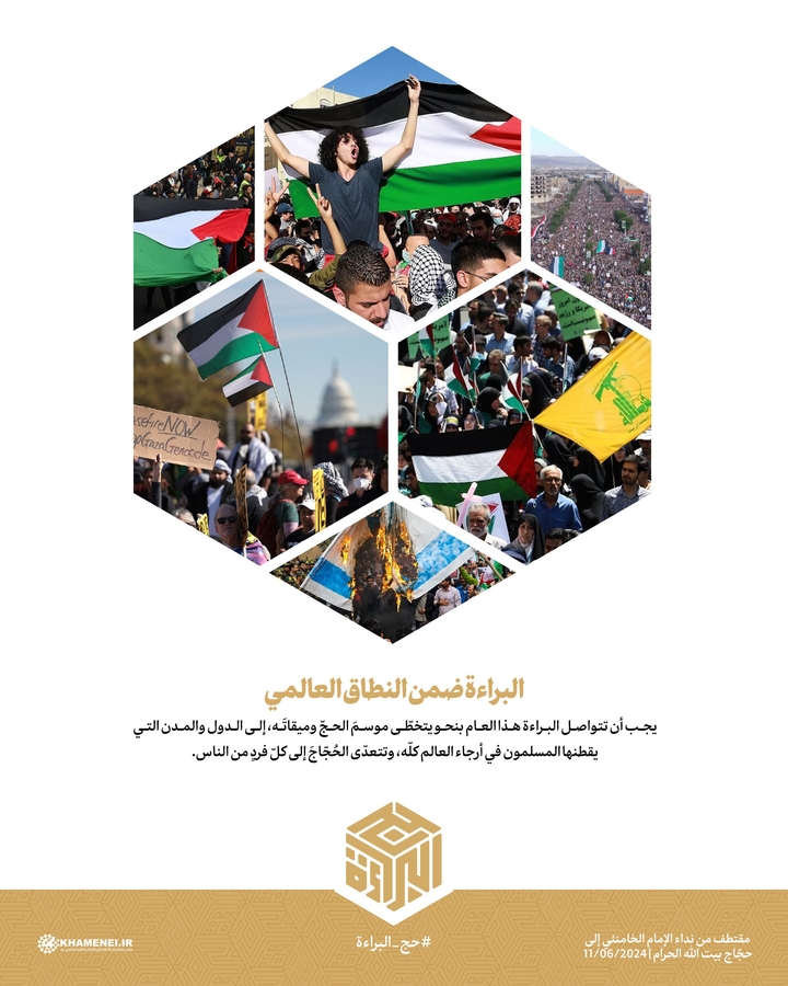 يجب أن تتواصل البراءة هذا العام بنحو يتخطّى موسمَ الحجّ وميقاتَه، إلى الدول والمدن التي يقطنها المسلمون في أرجاء العالم كلّه، وتتعدّى الحُجّاجَ إلى كلّ فردٍ من الناس.
