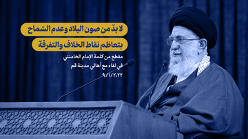 ينشر موقع KHAMENEI.IR الإعلامي مقطع فيديو يتضمّن كلام الإمام الخامنئي بتاريخ 9/1/2022 حول أهميّة العمل على صون الوحدة في البلاد والتقليل من أسباب التفرقة، مشيراً إلى أنّه لا مشكلة في اختلاف الأذواق والآراء والمناهج والأساليب، لكن لا بدّ من الحؤول دون تعاظم الخلافات وأخذ قرار جماعيّ بالدفاع عن البلاد من أجل تقدّمه وضخّ الأمل في قلوب شبابه.